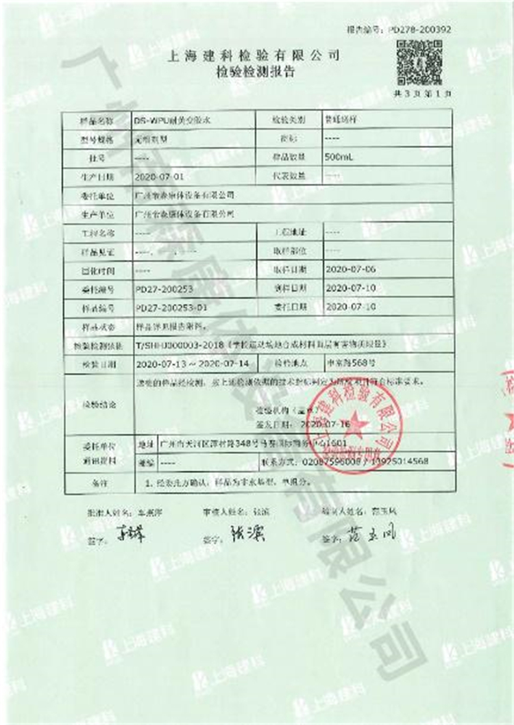 經過檢測(ce)認定,廣州帝森DISEN耐黃變膠水憑借過硬的(de)產(chan)品質(zhi)量,通過了上(shang)海(hai)團標T/SHHJ000003-2018《學校運(yun)動(dong)場地(di)合成材料面層有害物(wu)質(zhi)限量》,驗證(zheng)了產(chan)品所具(ju)備的(de)高品質(zhi),也反映(ying)了廣州帝森DISEN在運(yun)動(dong)地(di)面材料綠(lv)色、環保、安全(quan)性能方面的(de)嚴格(ge)要求(qiu)。